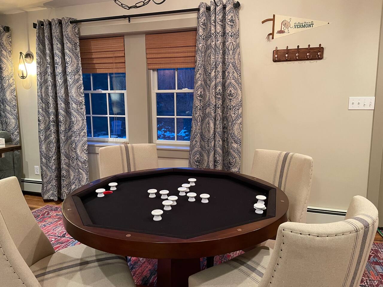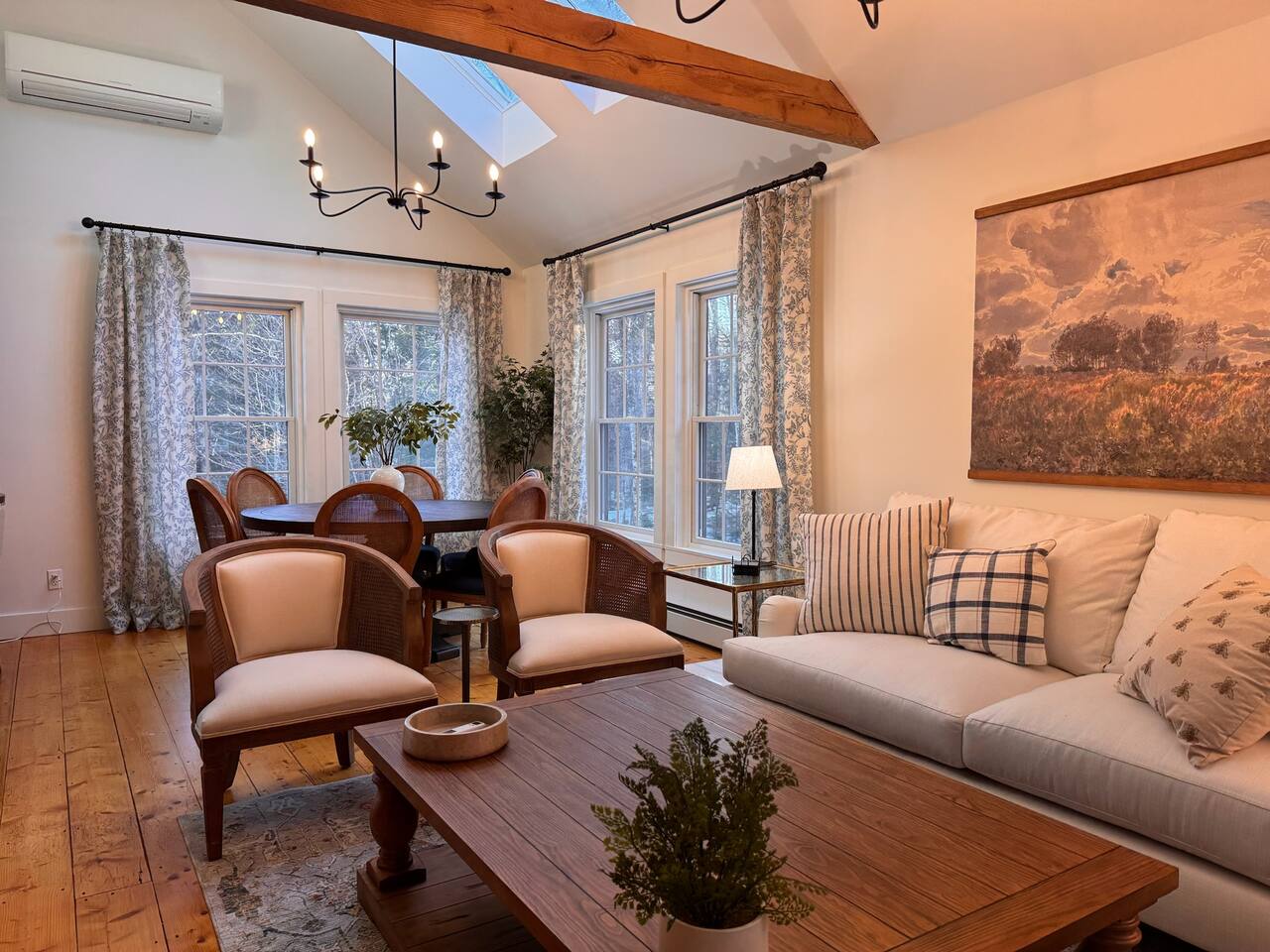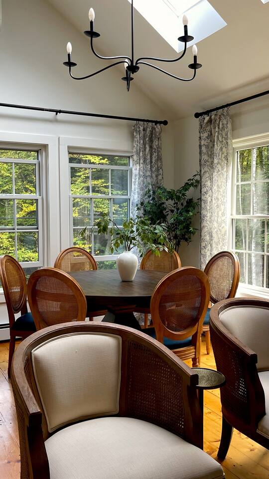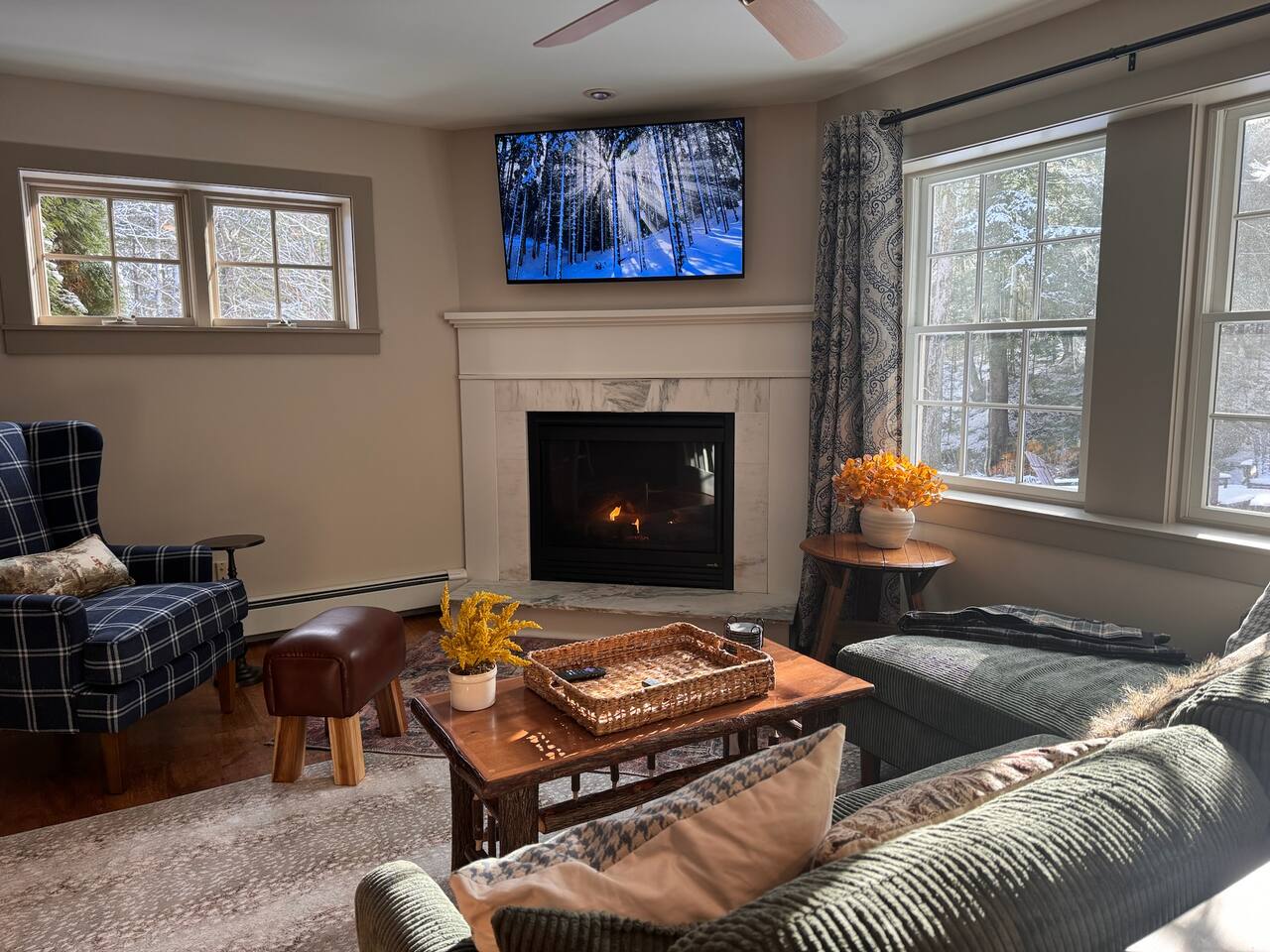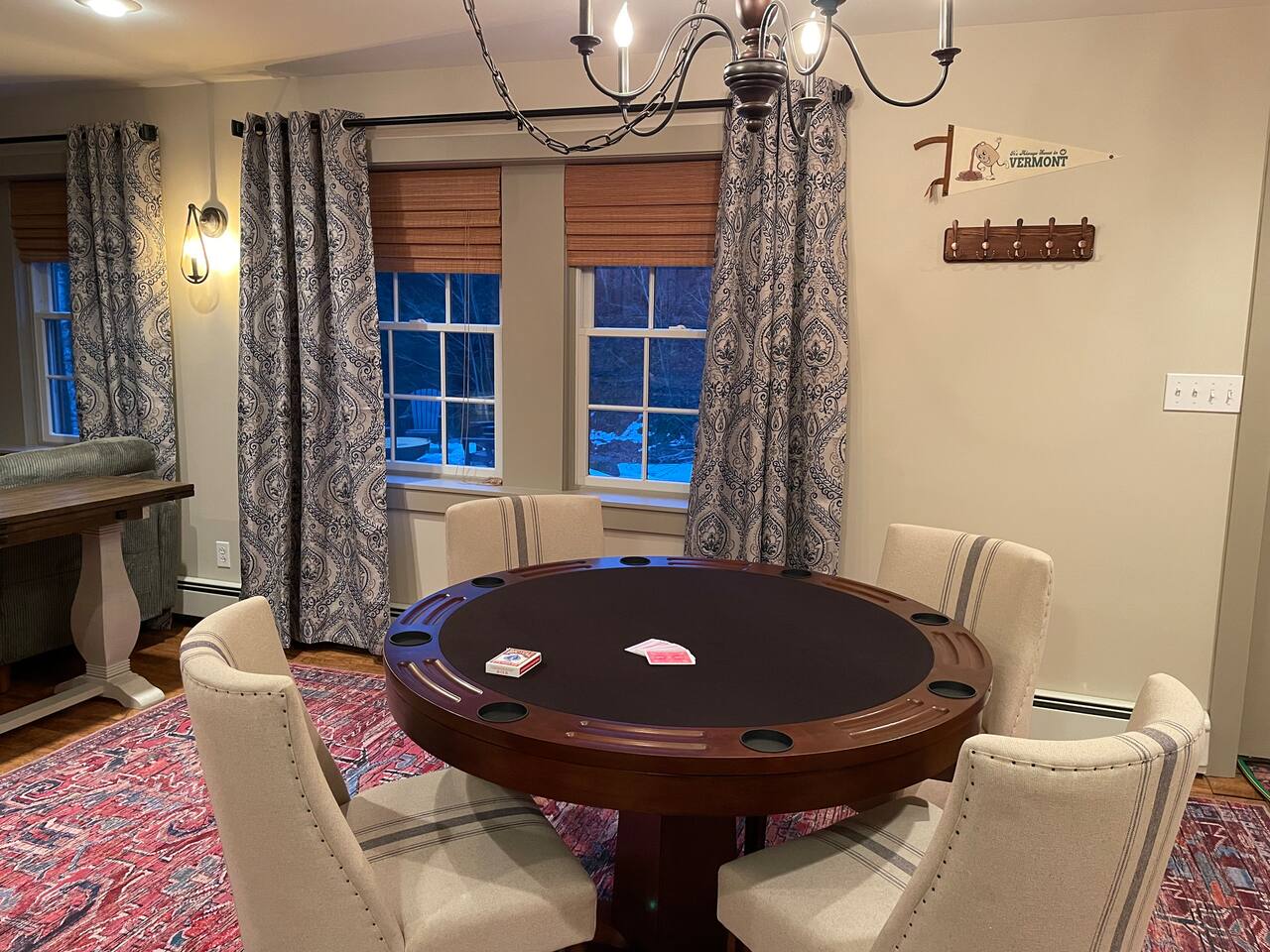 Crafted for Gatherings • Three bedrooms + Murphy bed in office: The Green Mountain Room has a king bed, the Maple Room and Brookside Suite each have a queen bed. There is a convertible queen Murphy in the office. Please let us know if you would like the Murphy bed setup for sleeping. We keep it up for use for work space and will set the bed upon request. • Open-concept living areas: Vaulted ceilings, exposed beams, and abundant seating for relaxing and gathering. Smart TV (Samsung Frame) with Sonos speaker. • Expansive deck with grilling & outdoor dining: Forest and brook views create a peaceful backdrop for group meals. • Lower-level lodge-style lounge: Gas fireplace, Smart TV with Roku, poker/bumper pool table, games, and a kitchenette—ideal for group fun, movie nights, and family tournaments. • Dedicated home office: High-speed WiFi makes remote work—or planning tomorrow’s adventures—easy. • Private hot tub & firepit: Unwind after a day outdoors or enjoy evenings under the Vermont sky, with s’mores for all-ages fun. • Fully equipped kitchen: Ready for family feasts or casual snacks, featuring updated appliances and ample dining space. • Pet-friendly for small dogs: We welcome your well-behaved pup (see guidelines below). Designed for Effortless Comfort • High-quality linens and towels • Spa-inspired bath amenities • Multiple living spaces so everyone can spread out—or come together • Two A/C units for seasonal comfort (living room and master) Privacy & Adventure, Side by Side Enjoy DIRECT access to Green Mountain National Forest and nearby hiking trails—from the house to the woods in moments! Minutes away you’ll find: • Manchester shopping/dining (15 min) • Londonderry essentials (6 miles: groceries, local butcher, eateries) • Bromley Adventure Park/skiing (3-4 miles), Stratton, Magic, and Okemo (short drives) • Hapgood Pond, Dorset Quarry, waterfalls, swimming holes, and golf (4 local courses) • Classic Vermont experiences: General stores, farm stands, galleries, brewery tours, the famous Vermont Country Store, and the Orvis flagship. • Nearby family-friendly activities, scenic byways for memorable day trips, and easy access to historical/seasonal attractions